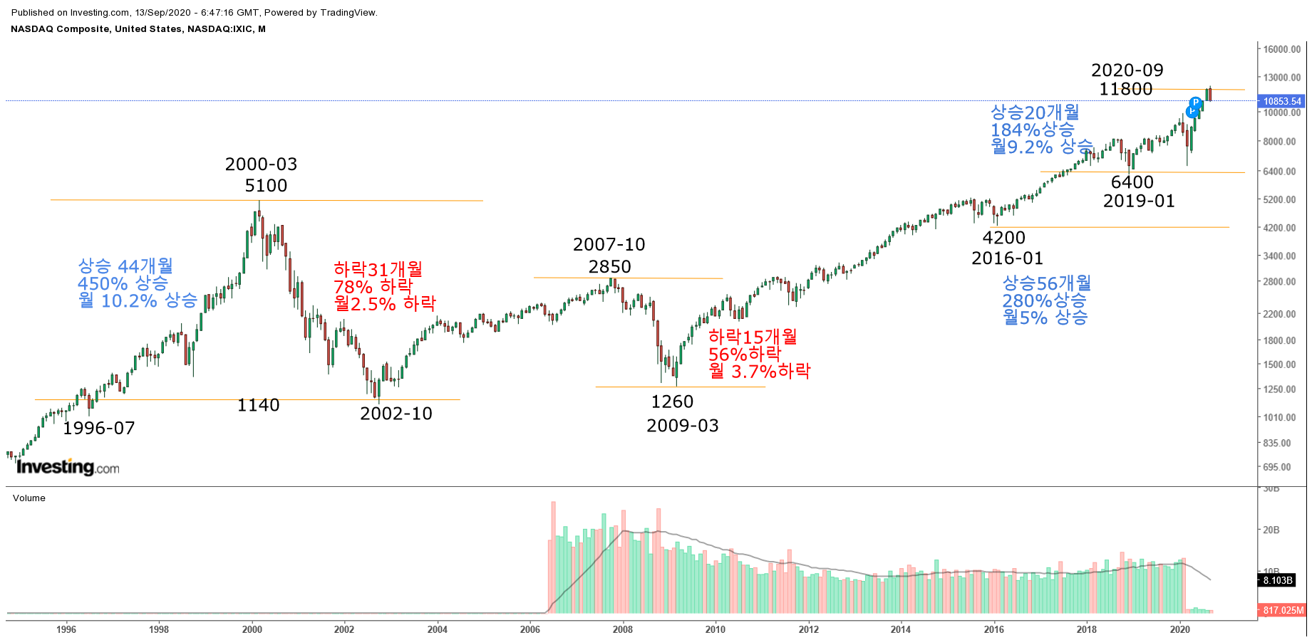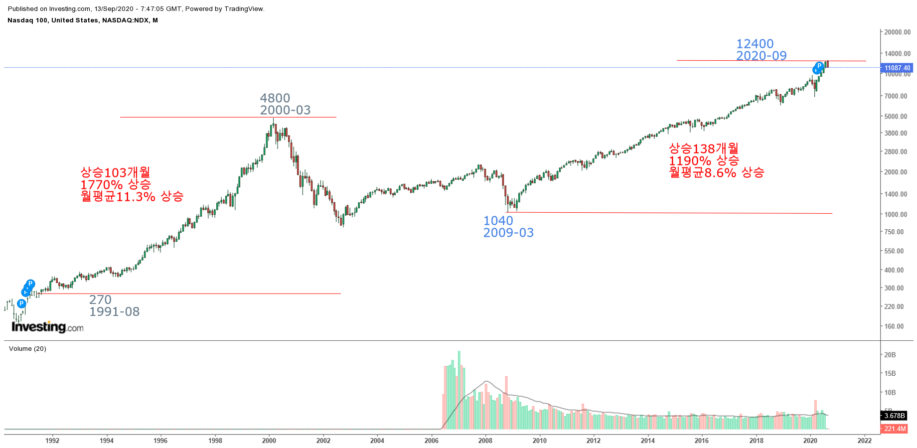 - 닷컴버블에는 월평균 상승율이 11.3% 입니다.