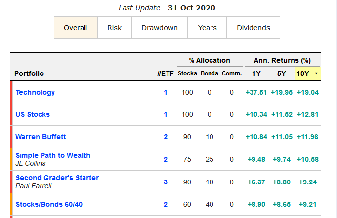 Follow the best Lazy Portfolios and build them with ETFs. Check yearly returns, asset allocations and choose the portfolio that best fits your needs.