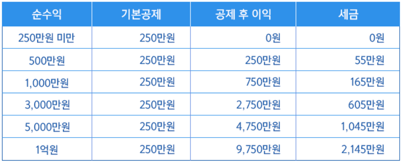 - 수익 : 22% 과세 (250만원까지 비과세)