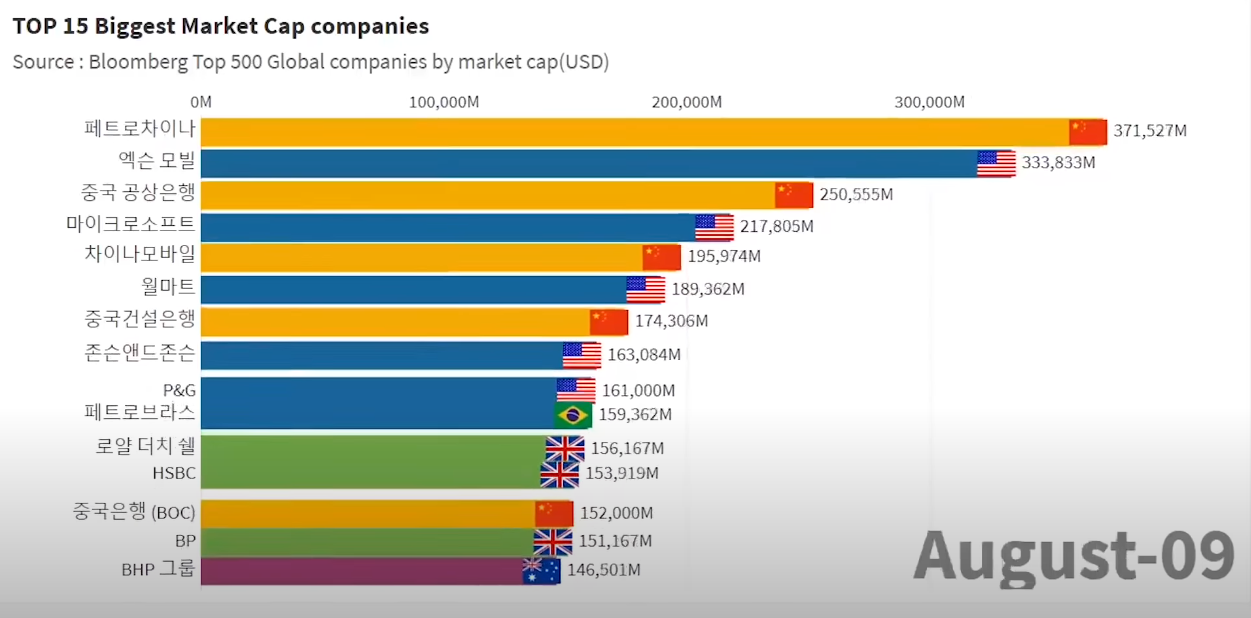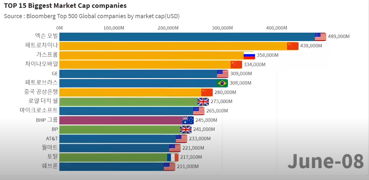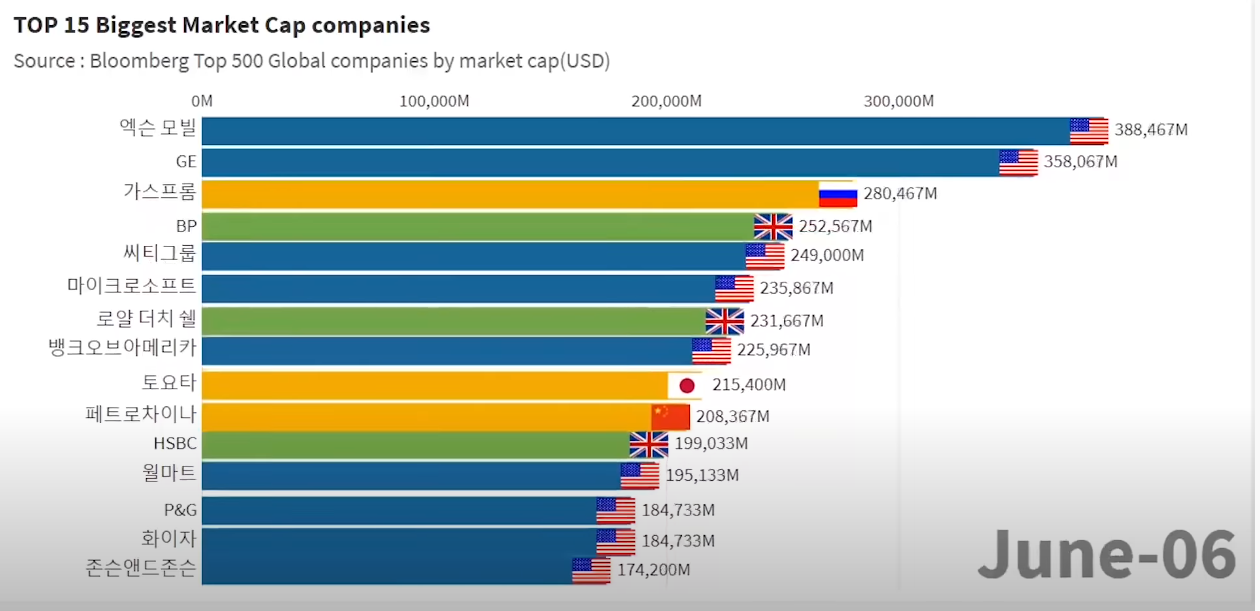 - 석유기업, 식음료기업, 은행등 전통적 산업이 버티고 있었습니다.