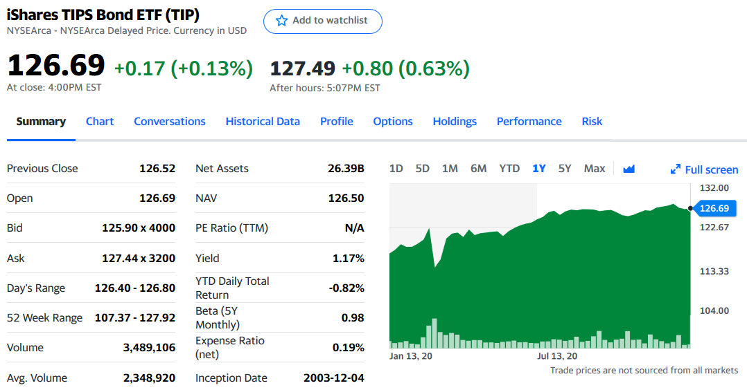 - Bloomberg Barclays U.S. Treasury Inflation Protected Securities (TIPS) Index (Series-L) 를 추종