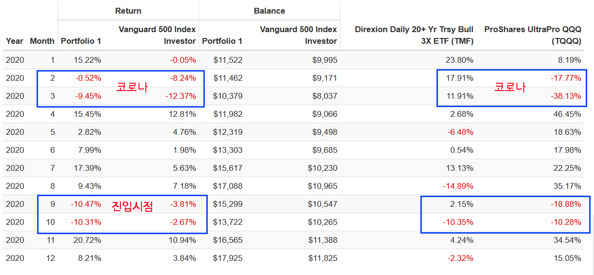 [TQQQ - TMF] 작년 (2020년) 얼마나 선방했는지 데이터 살펴보기