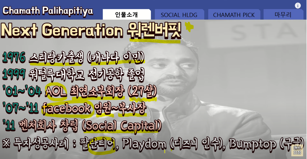 [오른쪽] Chamath Palihapitiya (카마스 팔리하피디야) 는 facebook 의 임원이었으며,