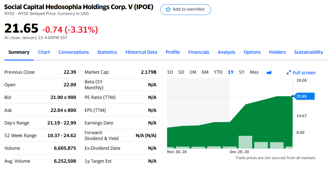 - 2021년 1월 7일자로 Sofi가 스팩주 IPOE와 합병을 발표했습니다