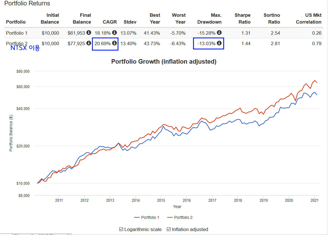 2. NTSX 를 이용해서 만든 2.04배 포트폴리오. (올웨더 포트폴리오)