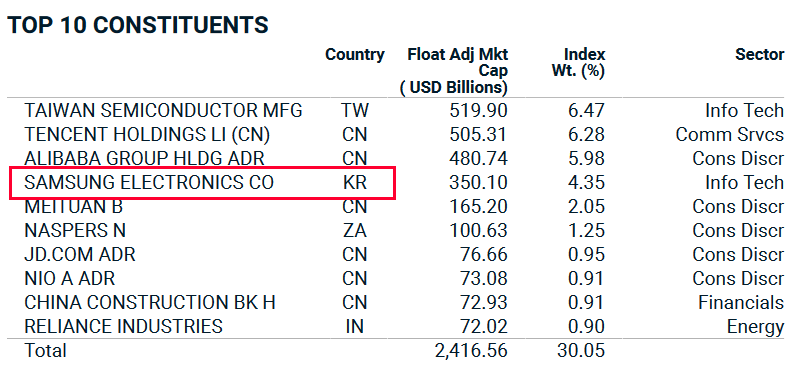 우리나라의 삼성전자가 4.35% 비중입니다.