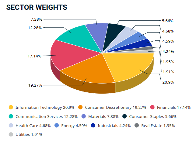 - 뒤를 이어, 소비재 관련이 19.27% 네요. ( 자유소비재(Consumer Discretionary). 자동차, 백화점, 레저,. 의류, 소매, 미디어 등)